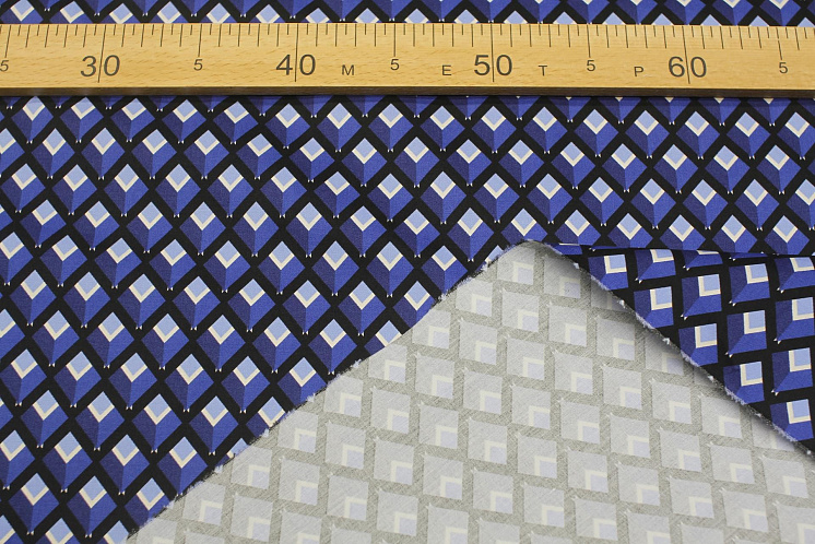 Хлопок стрейч (н) сине-черно-голубой геометрический рисунок Арт. 01-7832