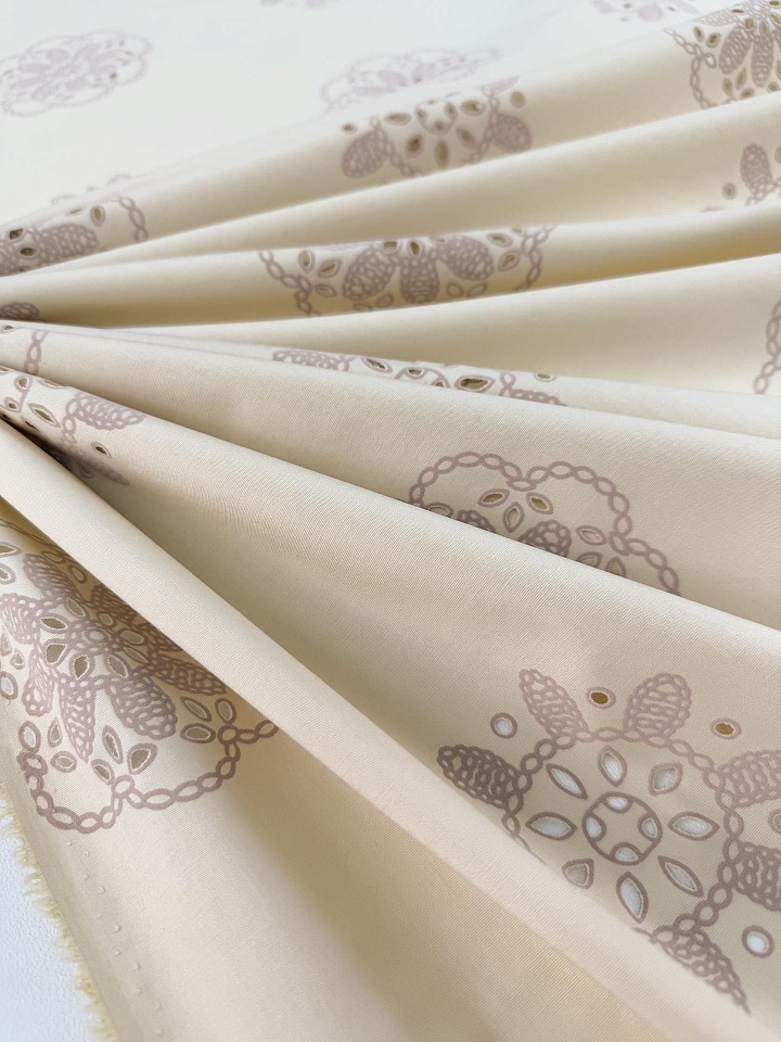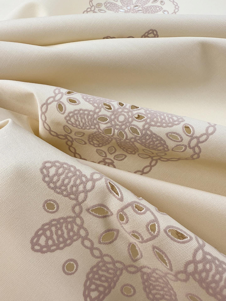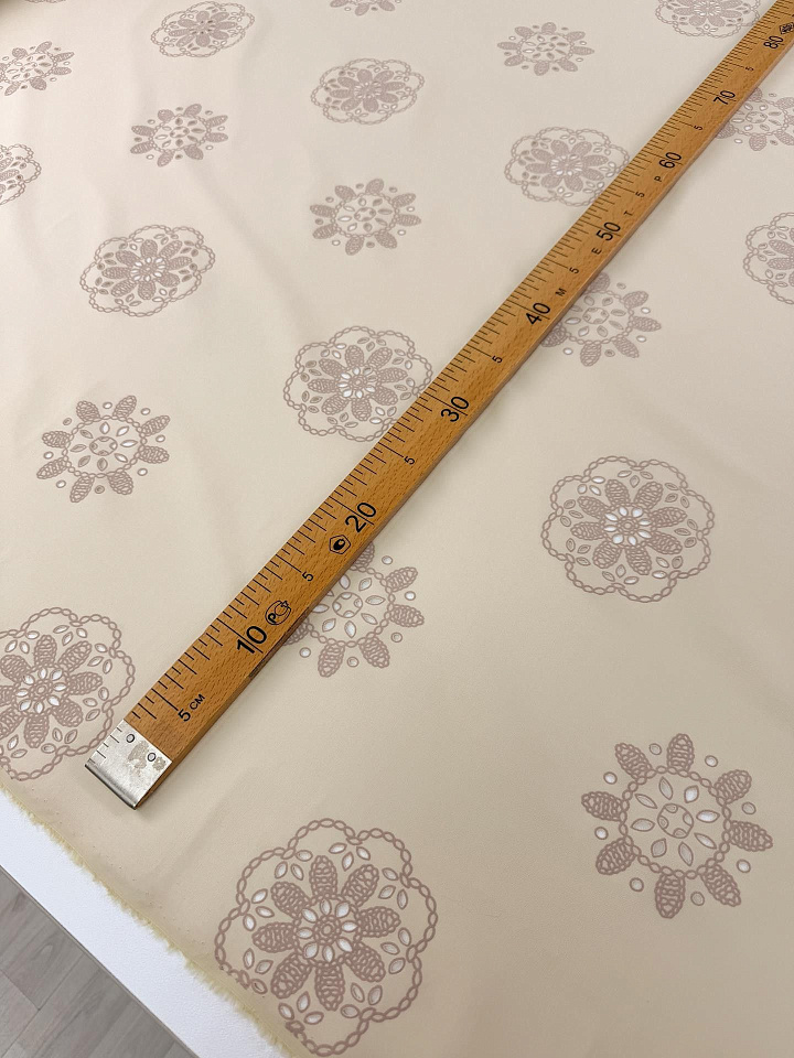 Хлопок стрейч с перфорацией (н) цветочный рисунок на бежевом Арт. 01-8056