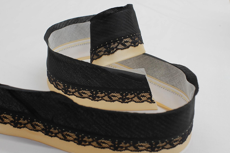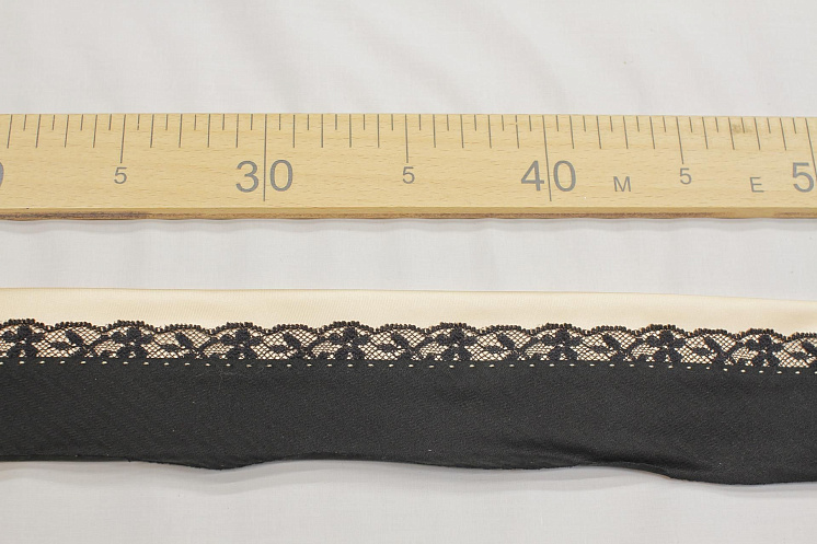 Корсажная лента черно-персиковая с кружевом Арт. F-6221