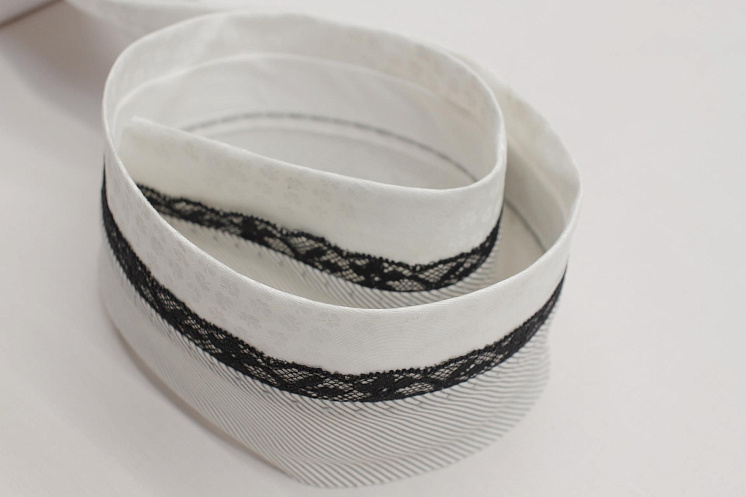 Корсажная лента с белыми цветами/в серую полоску с кружевом Арт. F-6222