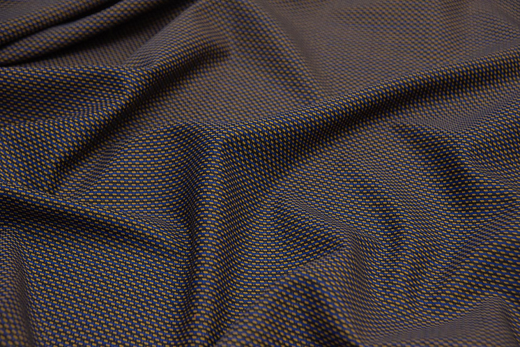 Костюмная дабл (н) сине-горчичная в крапину - цена 2 400 ₽ У нас самые доступные цены на Костюмные ткани в Москве, доставка по всей России - интернет магазин тканей Тессутидея. Артикул товара для заказа - 17-0966. Страна производства ткани – Италия. Ширина этого материала - 145. Состав - Шерсть 67% полиамид 30% эластан 3%. Наличие остатков на складе - 4.2 м