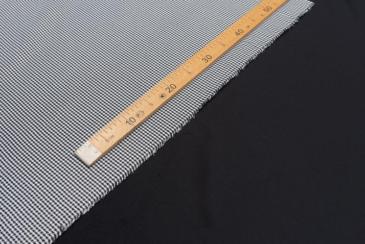 Костюмная двухслойная (н) черная/черно-белая гусиная лапка - цена 5 400 ₽ У нас самые доступные цены на Костюмные ткани в Москве, доставка по всей России - интернет магазин тканей Тессутидея. Артикул товара для заказа - 05-4297. Страна производства ткани – Италия. Ширина этого материала - 150. Состав - Кашемир 50% хлопок 50%. Наличие остатков на складе - 7.1 м