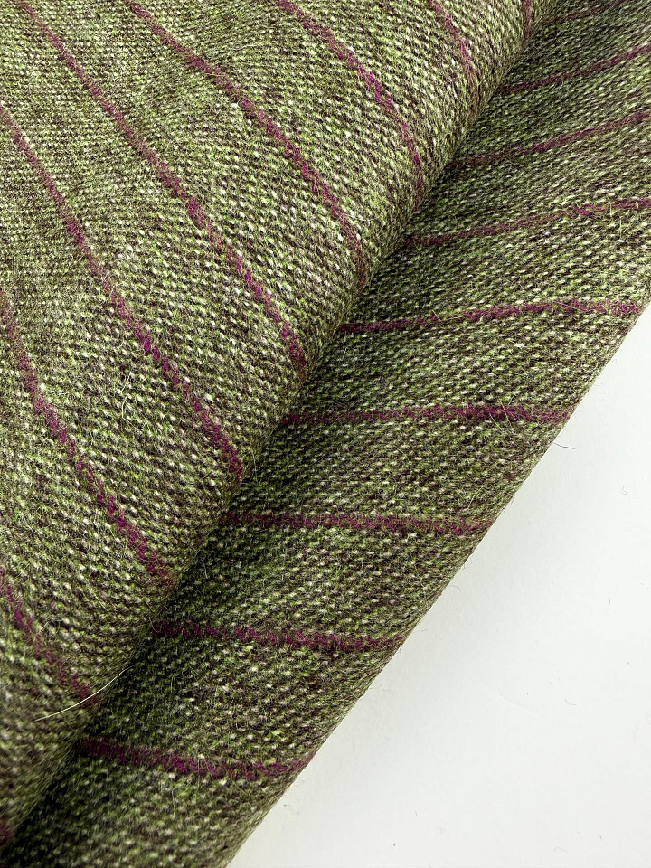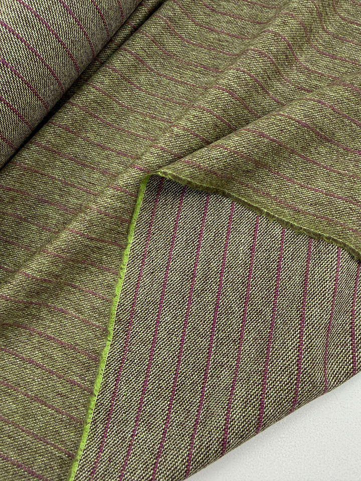 Костюмная фланель ангора с шерстью (н) бордовая полоска на салатовом Арт. 05-5367