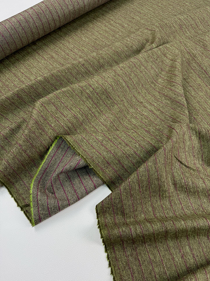 Костюмная фланель ангора с шерстью (н) бордовая полоска на салатовом - цена 4 200 ₽ У нас самые доступные цены на в Москве, доставка по всей России - интернет магазин тканей Тессутидея. Артикул товара для заказа - 05-5367. Страна производства ткани – Италия. Ширина этого материала - 150. Состав - Ангора 30% шерсть 70%. Наличие остатков на складе - 3.5 м