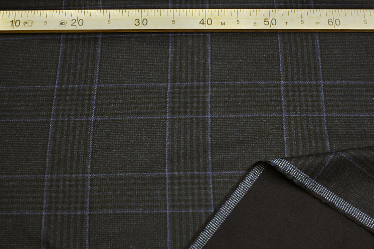 Костюмная кашемир+шерсть двухслойная (н) сине-черная клетка/темно-синяя Арт. 05-4724