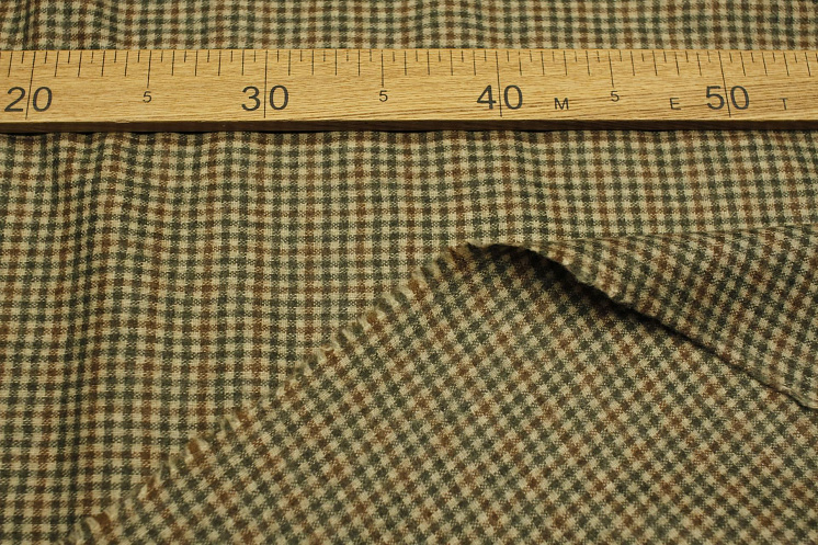 Костюмная кашемир+шерсть (н) бежево-коричнево-зеленая клетка - цена 6 200 ₽ У нас самые доступные цены на в Москве, доставка по всей России - интернет магазин тканей Тессутидея. Артикул товара для заказа - 05-4958. Страна производства ткани – Италия. Ширина этого материала - 150. Состав - Кашемир 40% шерсть 60%. Наличие остатков на складе - 1.9 м