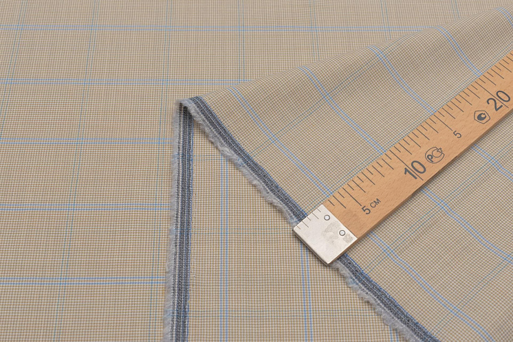 Костюмная (н) бежево-голубая клетка - цена 3 200 ₽ У нас самые доступные цены на Костюмные ткани в Москве, доставка по всей России - интернет магазин тканей Тессутидея. Артикул товара для заказа - 05-4331. Страна производства ткани – Италия. Ширина этого материала - 155. Состав - Шерсть 100%. Наличие остатков на складе - 11.2 м