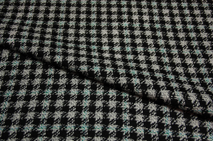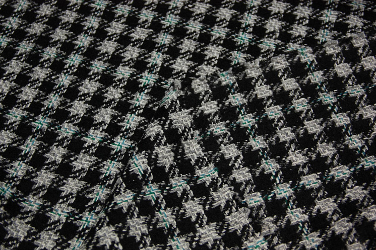 Костюмная (н) черно-бело-зеленая ш-150см - цена 2 800 ₽ У нас самые доступные цены на в Москве, доставка по всей России - интернет магазин тканей Тессутидея. Артикул товара для заказа - 05-2231. Страна производства ткани – Италия. Ширина этого материала - 150. Состав - Шерсть 50% хл 15%шелк 10%мохер 10%пол 15. Наличие остатков на складе - 9.4 м