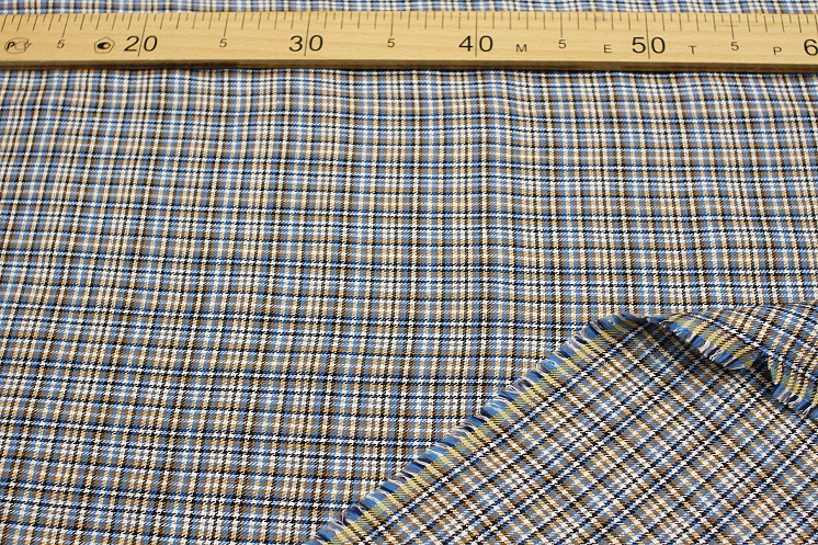 Костюмная (н) черно-бело-желто-голубая клетка - цена 2 600 ₽ У нас самые доступные цены на Костюмные ткани в Москве, доставка по всей России - интернет магазин тканей Тессутидея. Артикул товара для заказа - 05-4643. Страна производства ткани – Италия. Ширина этого материала - 150. Состав - Лен 70% хлопок 30%. Наличие остатков на складе - 2.4 м