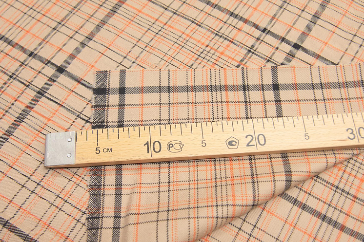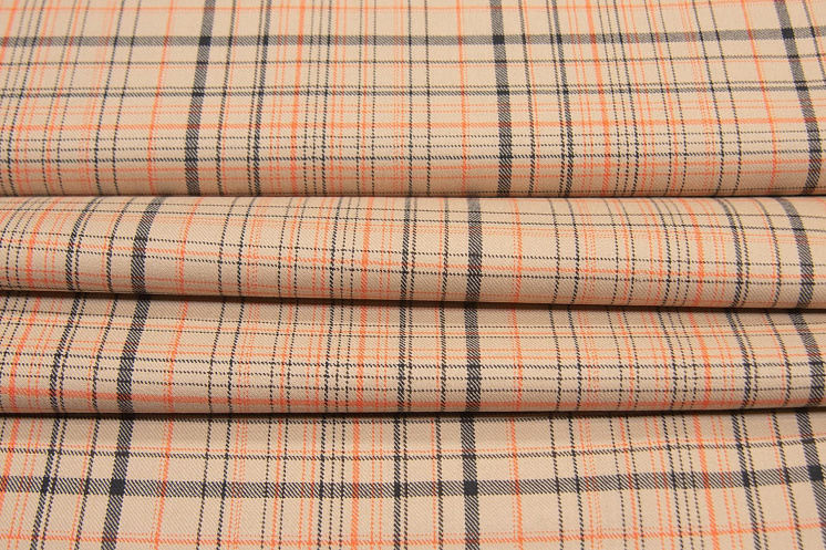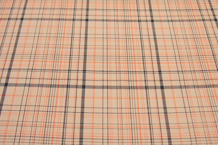 Костюмная (н) черно-оранжевая клетка на бежевом - цена 3 200 ₽ У нас самые доступные цены на Костюмные ткани в Москве, доставка по всей России - интернет магазин тканей Тессутидея. Артикул товара для заказа - 05-4059. Страна производства ткани – Италия. Ширина этого материала - 150. Состав - Шерсть 100%. Наличие остатков на складе - 4.3 м