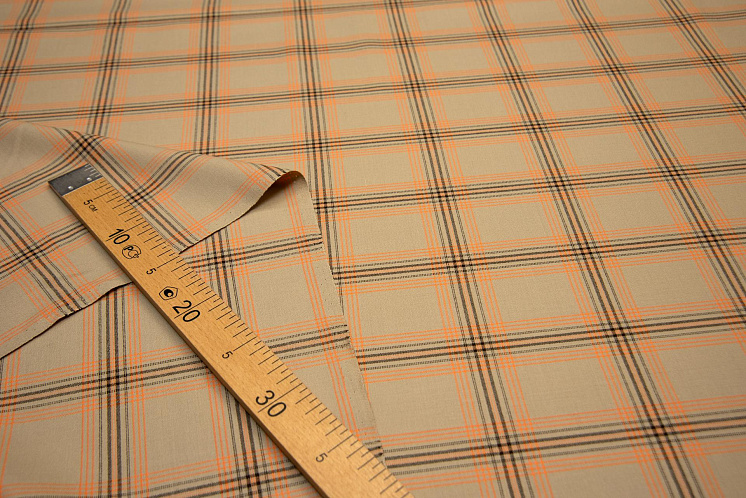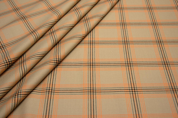 Костюмная (н) оранжево-черная клетка на бежевом - цена 4 200 ₽ У нас самые доступные цены на Костюмные ткани в Москве, доставка по всей России - интернет магазин тканей Тессутидея. Артикул товара для заказа - 05-3423. Страна производства ткани – Италия. Ширина этого материала - 155. Состав - Шерсть 100%. Наличие остатков на складе - 1.6 м