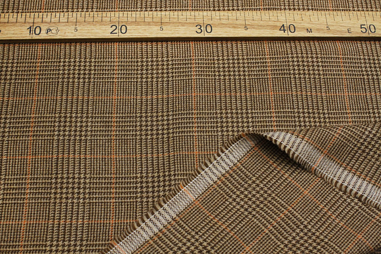Костюмная шерсть (н) крупная оранжевая клетка на бежево-коричневой стилизованной клетке Арт. 05-4885