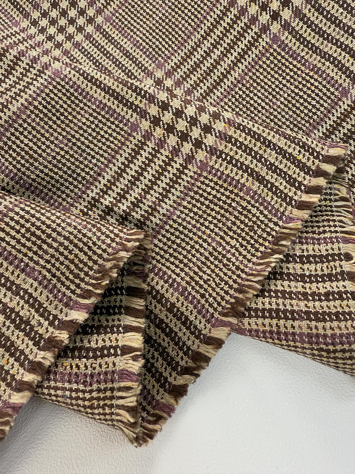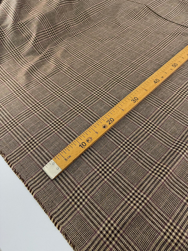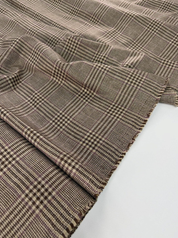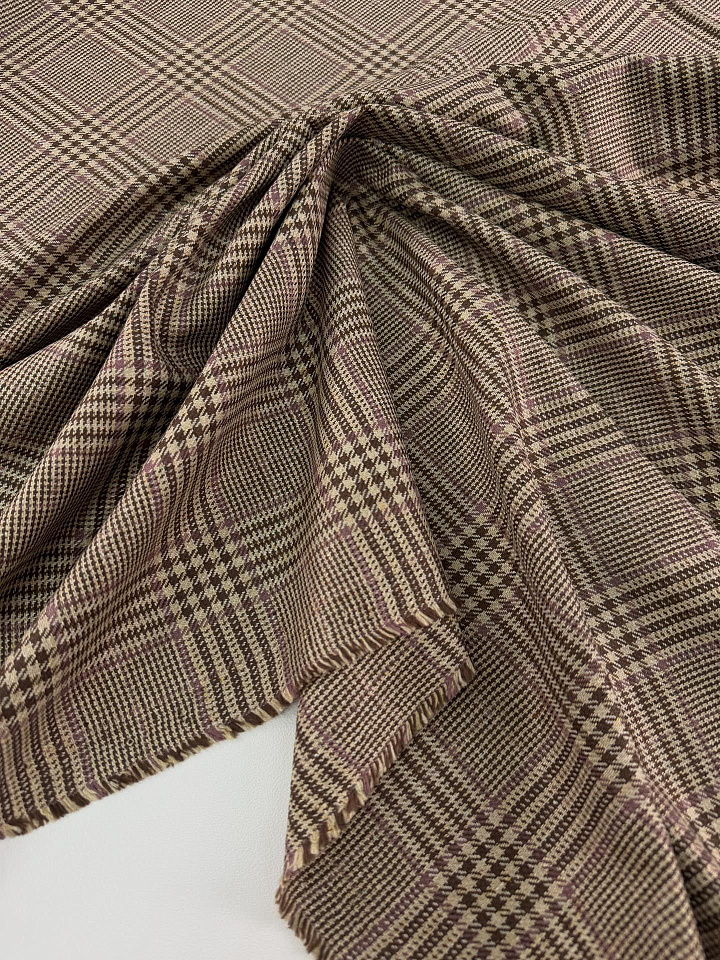 Костюмная шерсть+шелк (н) бежево-коричнево-лиловая клетка - цена 4 500 ₽ У нас самые доступные цены на в Москве, доставка по всей России - интернет магазин тканей Тессутидея. Артикул товара для заказа - 05-5126. Страна производства ткани – Италия. Ширина этого материала - 155. Состав - Шерсть 68% шелк 32%. Наличие остатков на складе - 8 м