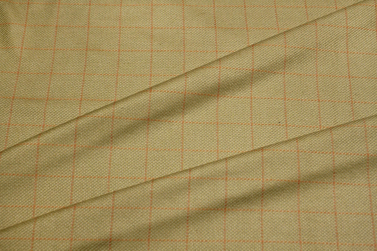Костюмная шерсть+шелк (н) оранжевая клетка на желто-оливковом - цена 8 200 ₽ У нас самые доступные цены на Костюмные ткани в Москве, доставка по всей России - интернет магазин тканей Тессутидея. Артикул товара для заказа - 05-4894. Страна производства ткани – Италия. Ширина этого материала - 155. Состав - Шерсть 50% шелк 50%. Наличие остатков на складе - 18.7 м