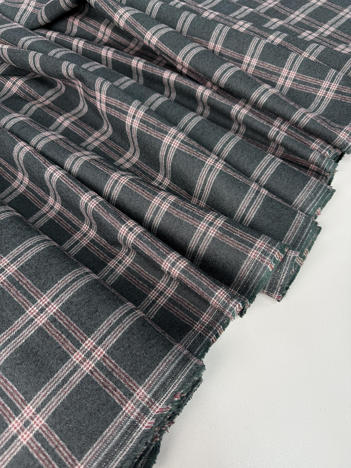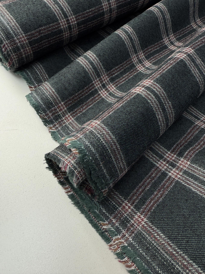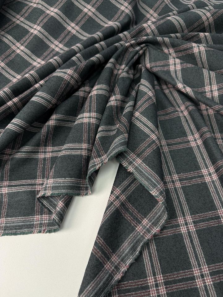 Костюмная шерсть стрейч (н) бело-бордовая клетка на зеленом - цена 4 500 ₽ У нас самые доступные цены на Костюмные ткани в Москве, доставка по всей России - интернет магазин тканей Тессутидея. Артикул товара для заказа - 05-5081. Страна производства ткани – Италия. Ширина этого материала - 160. Состав - Шерсть 96% эластан 4%. Наличие остатков на складе - 8.5 м