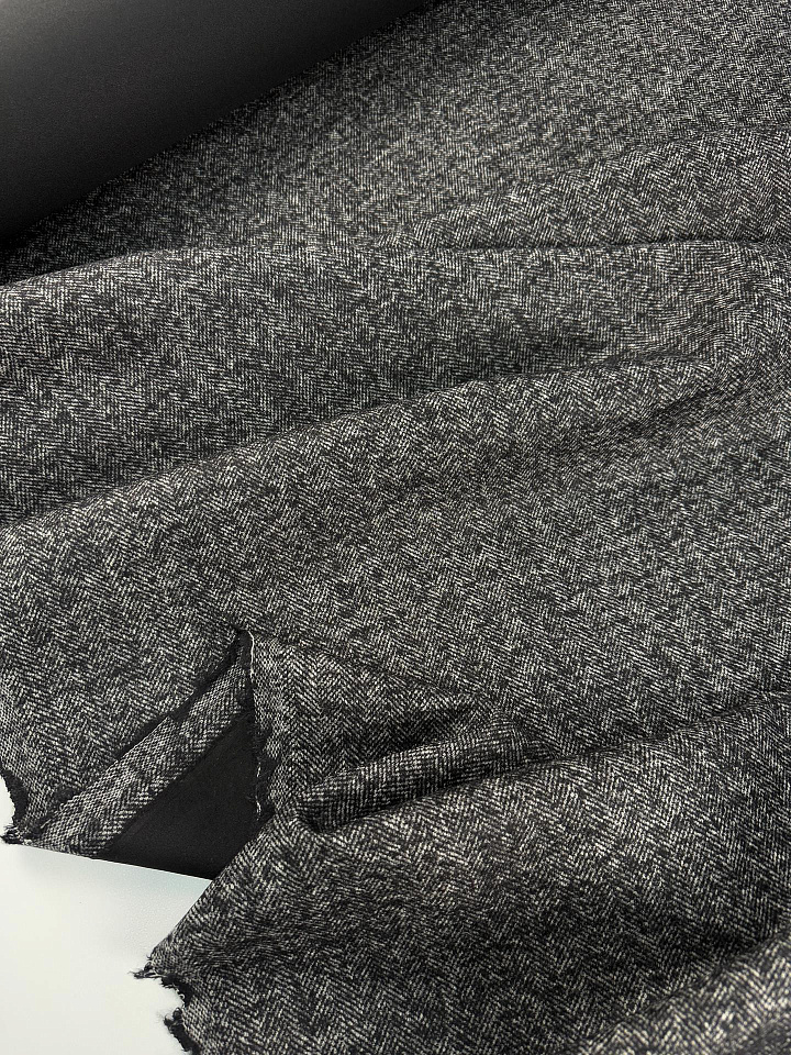 Костюмная шерсть твид продублированная (н) черно-белая - цена 4 200 ₽ У нас самые доступные цены на в Москве, доставка по всей России - интернет магазин тканей Тессутидея. Артикул товара для заказа - 05-5343. Страна производства ткани – Италия. Ширина этого материала - 155. Состав - Шерсть 100%. Наличие остатков на складе - 8.5 м