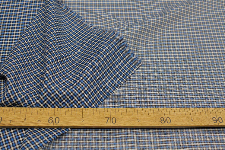 Костюмная стрейч 400 г/м (н) бело-черно-голубая клетка - цена 3 200 ₽ У нас самые доступные цены на Костюмные ткани в Москве, доставка по всей России - интернет магазин тканей Тессутидея. Артикул товара для заказа - 05-4464. Страна производства ткани – Италия. Ширина этого материала - 150. Состав - Шерсть 43% хлопок 51% полиамид 4% эласт. Наличие остатков на складе - 7 м
