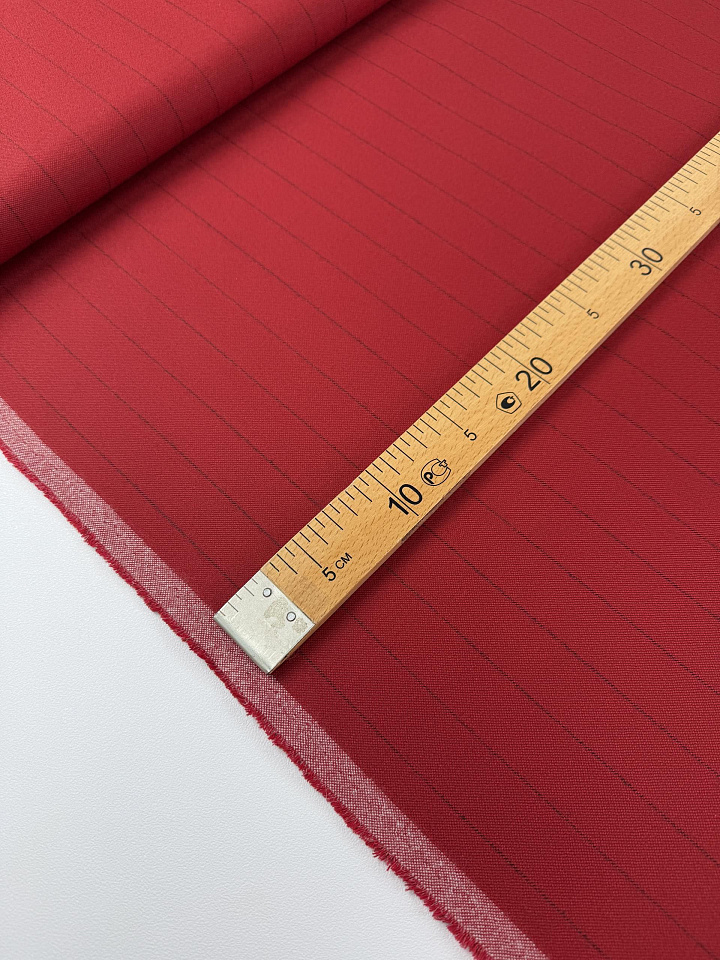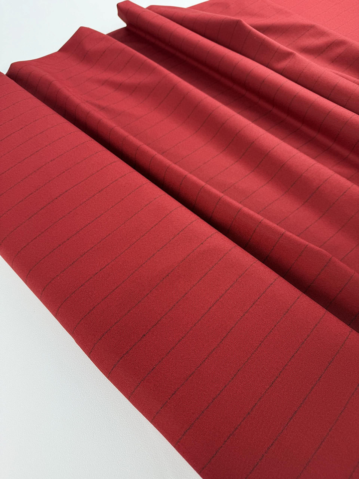 Костюмная стрейч (н) черная полоска на темно-красном - цена 4 500 ₽ У нас самые доступные цены на Костюмные ткани в Москве, доставка по всей России - интернет магазин тканей Тессутидея. Артикул товара для заказа - 05-5183. Страна производства ткани – Италия. Ширина этого материала - 165. Состав - Хлопок 98% эластан 2%. Наличие остатков на складе - 6 м