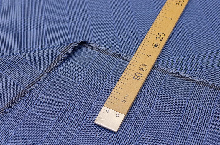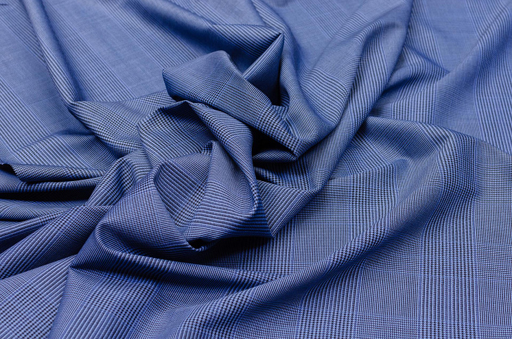 Костюмная стрейч (н) черная стилизованная клетка на голубом - цена 4 200 ₽ У нас самые доступные цены на Костюмные ткани в Москве, доставка по всей России - интернет магазин тканей Тессутидея. Артикул товара для заказа - 05-3101. Страна производства ткани – Италия. Ширина этого материала - 140. Состав - Шерсть 50% хлопок 47% эластан 3%. Наличие остатков на складе - 2.3 м