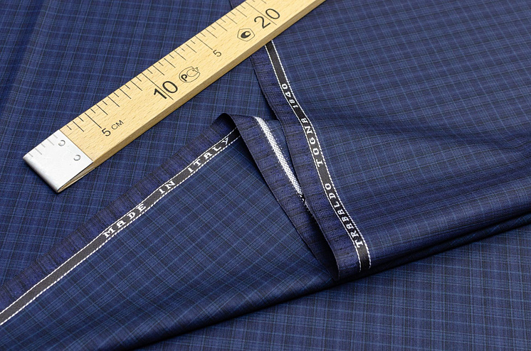 Костюмная стрейч (н) черно-синяя клетка - цена 4 200 ₽ У нас самые доступные цены на Костюмные ткани в Москве, доставка по всей России - интернет магазин тканей Тессутидея. Артикул товара для заказа - 05-3248. Страна производства ткани – Италия. Ширина этого материала - 150. Состав - Шерсть 98% эластан 2%. Наличие остатков на складе - 2.85 м