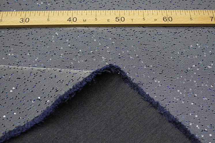 Костюмная стрейч с пайетками (о) серо-синяя меланж - цена 4 800 ₽ У нас самые доступные цены на в Москве, доставка по всей России - интернет магазин тканей Тессутидея. Артикул товара для заказа - 05-3065. Страна производства ткани – Италия. Ширина этого материала - 140. Состав - Хлопок 45% полиамид 37% полиэстер 10% эл. Наличие остатков на складе - 1.4 м