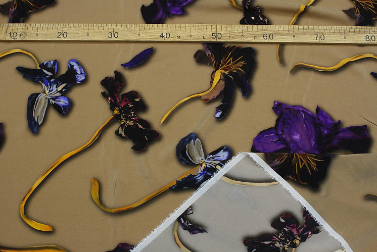 Крепдешин 90 г/м (н) крупный цветочный рисунок на светло-коричневом - цена 4 200 ₽ У нас самые доступные цены на Крепы шелковые в Москве, доставка по всей России - интернет магазин тканей Тессутидея. Артикул товара для заказа - 10-4016. Страна производства ткани – Италия. Ширина этого материала - 140. Состав - Шелк 100%. Наличие остатков на складе - 6.3 м