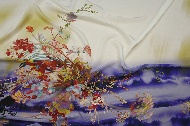 Крепдешин купон (1,45м) (н) цветочный рисунок на сине-бело-голубом деграде - цена 4 800 ₽ У нас самые доступные цены на Крепы шелковые в Москве, доставка по всей России - интернет магазин тканей Тессутидея. Артикул товара для заказа - 10-3978. Страна производства ткани – Италия. Ширина этого материала - 140. Состав - Шелк 100%. Наличие остатков на складе - 1.6 м