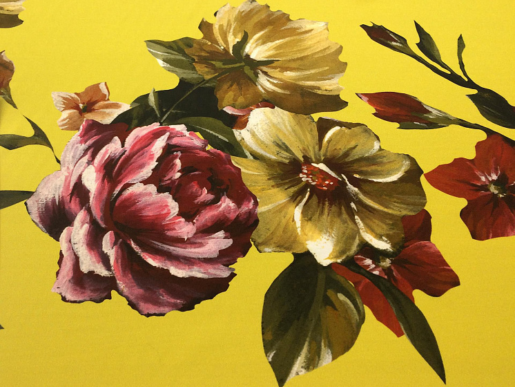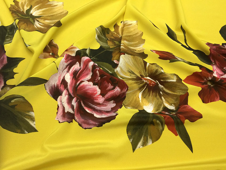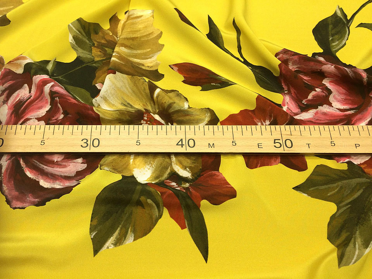 Крепдешин купон (1,6м) (н) цветочный орнамент на желтом - цена 4 500 ₽ У нас самые доступные цены на Крепы шелковые в Москве, доставка по всей России - интернет магазин тканей Тессутидея. Артикул товара для заказа - 02-7351. Страна производства ткани – Италия. Ширина этого материала - 140. Состав - Шелк 96% эластан 4%. Наличие остатков на складе - 1.5 м