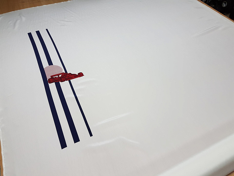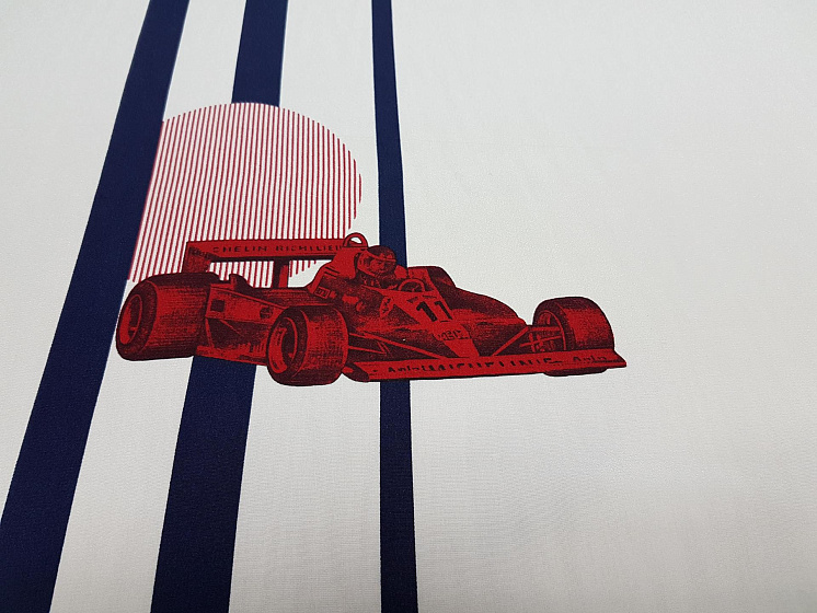 Крепдешин купон (1,8м) (н) "Формула - 1" на сине-белом Арт. 02-6435
