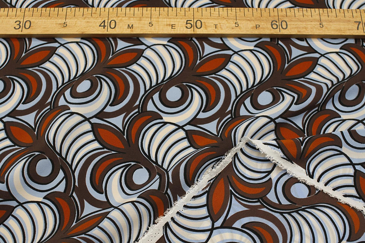 Крепдешин (н) бело-коричнево-голубая растительная абстракция Арт. 10-3845