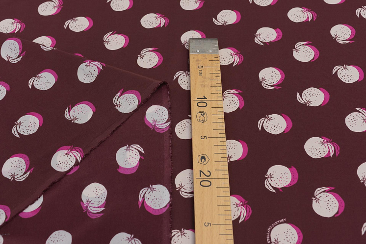 Крепдешин (н) белые апельсины на темно-коричневом - цена 4 200 ₽ У нас самые доступные цены на Крепы шелковые в Москве, доставка по всей России - интернет магазин тканей Тессутидея. Артикул товара для заказа - 10-2564. Страна производства ткани – Италия. Ширина этого материала - 140. Состав - Шелк 100%. Наличие остатков на складе - 5.7 м