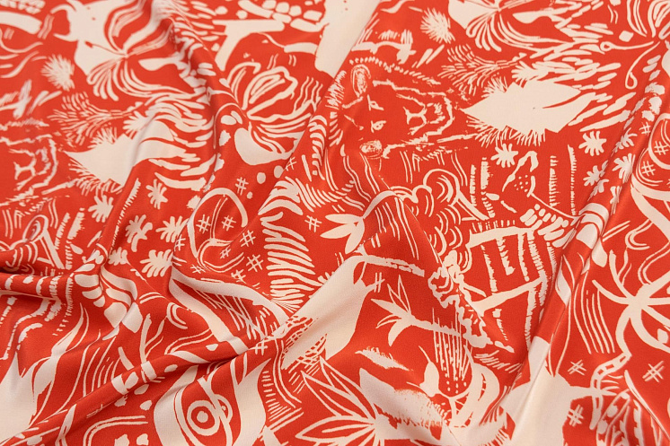 Крепдешин (н) белый растительно-животный рисунок на терракотовом - цена 3 800 ₽ У нас самые доступные цены на Крепы шелковые в Москве, доставка по всей России - интернет магазин тканей Тессутидея. Артикул товара для заказа - 10-2391. Страна производства ткани – Италия. Ширина этого материала - 140. Состав - Шелк 100%. Наличие остатков на складе - 4.5 м
