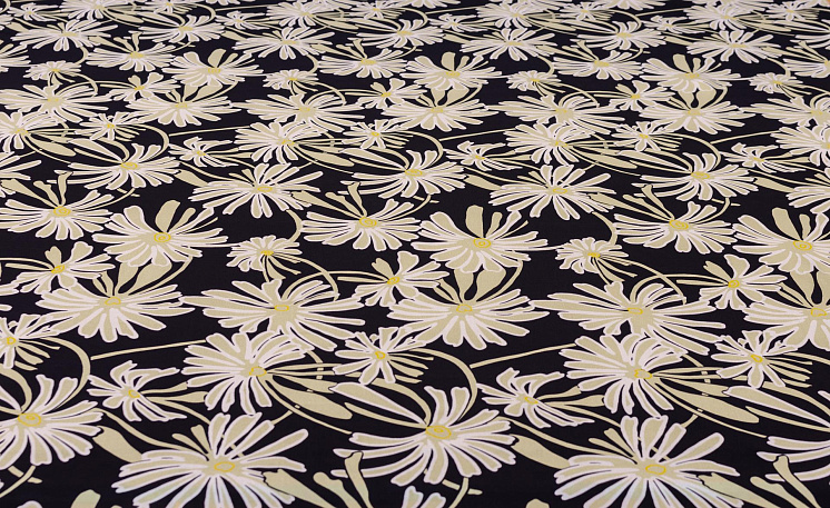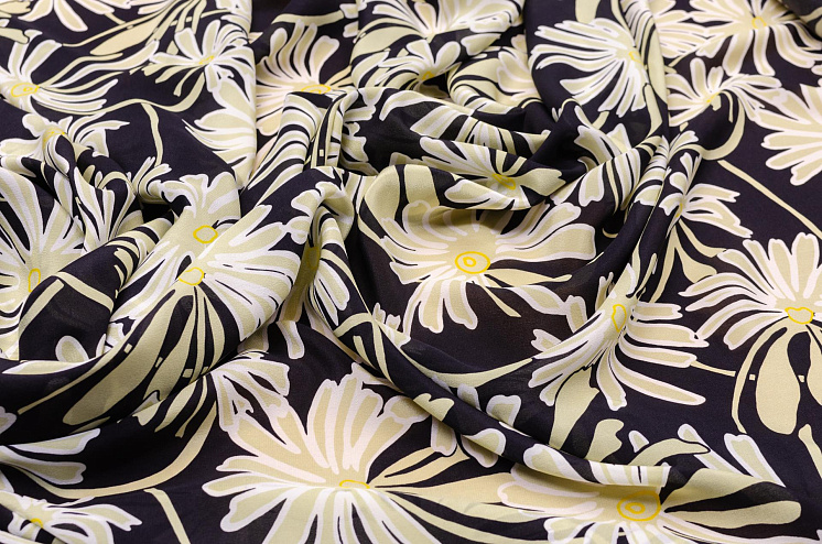 Крепдешин (н) бежевые цветы на черном - цена 4 600 ₽ У нас самые доступные цены на Крепы шелковые в Москве, доставка по всей России - интернет магазин тканей Тессутидея. Артикул товара для заказа - 02-8445. Страна производства ткани – Италия. Ширина этого материала - 140. Состав - Шелк 100%. Наличие остатков на складе - 6 м