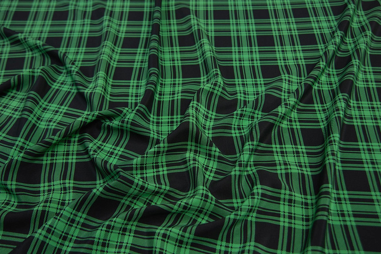 Крепдешин (н) черная клетка на зеленом Арт. 10-2429