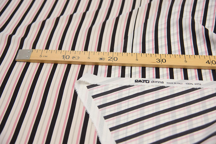 Крепдешин (н) черно-серо-розовая поперечная полоска на белом - цена 6 400 ₽ У нас самые доступные цены на Крепы шелковые в Москве, доставка по всей России - интернет магазин тканей Тессутидея. Артикул товара для заказа - 10-1644. Страна производства ткани – Италия. Ширина этого материала - 140. Состав - Шелк 100%. Наличие остатков на складе - 6.2 м