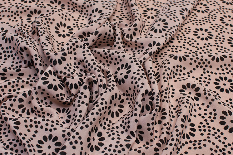 Крепдешин (н) черный орнамент на розовом - цена 3 400 ₽ У нас самые доступные цены на Крепы шелковые в Москве, доставка по всей России - интернет магазин тканей Тессутидея. Артикул товара для заказа - 02-9039. Страна производства ткани – Италия. Ширина этого материала - 140. Состав - Шелк 100%. Наличие остатков на складе - 6.2 м