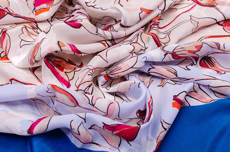 Крепдешин (н) колокольчики на сине-бело-голубом - цена 4 600 ₽ У нас самые доступные цены на Крепы шелковые в Москве, доставка по всей России - интернет магазин тканей Тессутидея. Артикул товара для заказа - 02-8446. Страна производства ткани – Италия. Ширина этого материала - 140. Состав - Шелк 100%. Наличие остатков на складе - 4.4 м