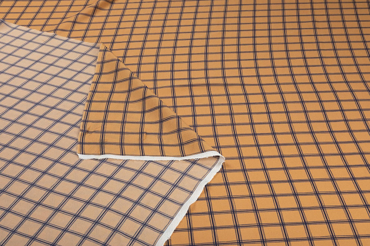 Крепдешин (н) коричнево-синяя клетка - цена 3 400 ₽ У нас самые доступные цены на Крепы шелковые в Москве, доставка по всей России - интернет магазин тканей Тессутидея. Артикул товара для заказа - 10-2700. Страна производства ткани – Италия. Ширина этого материала - 140. Состав - Шелк 100%. Наличие остатков на складе - 3.7 м