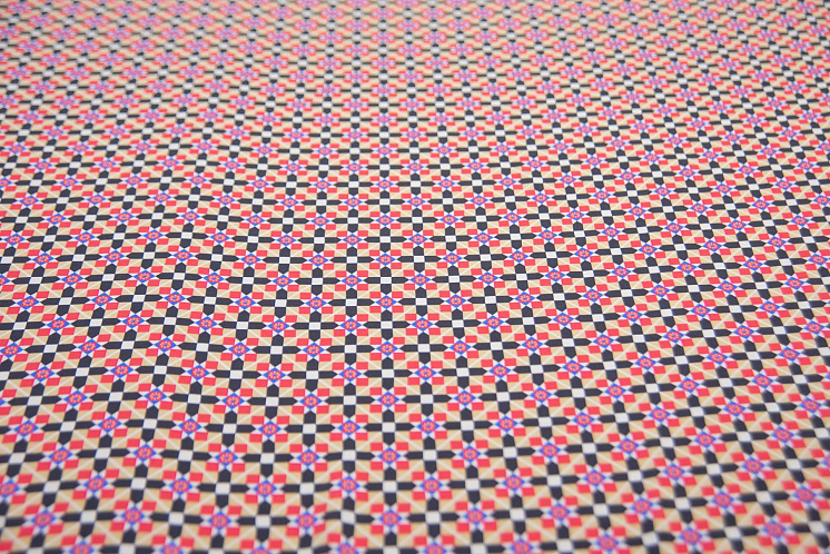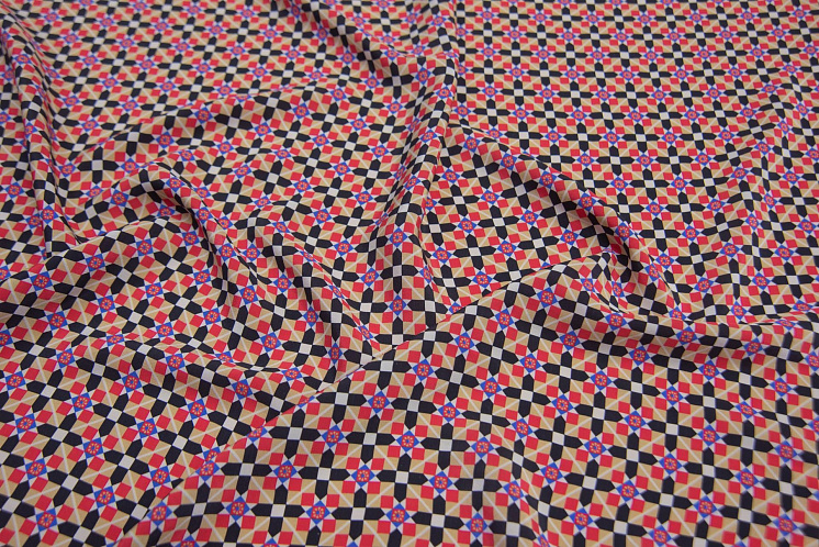 Крепдешин (н) красно-черно-бело-бежевый геометрический орнамент в стиле Prada Арт. 10-2008