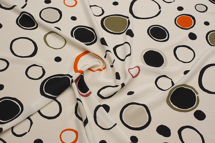 Крепдешин (н) крупный стилизованный горох на светло-бежевом Арт. 10-4135