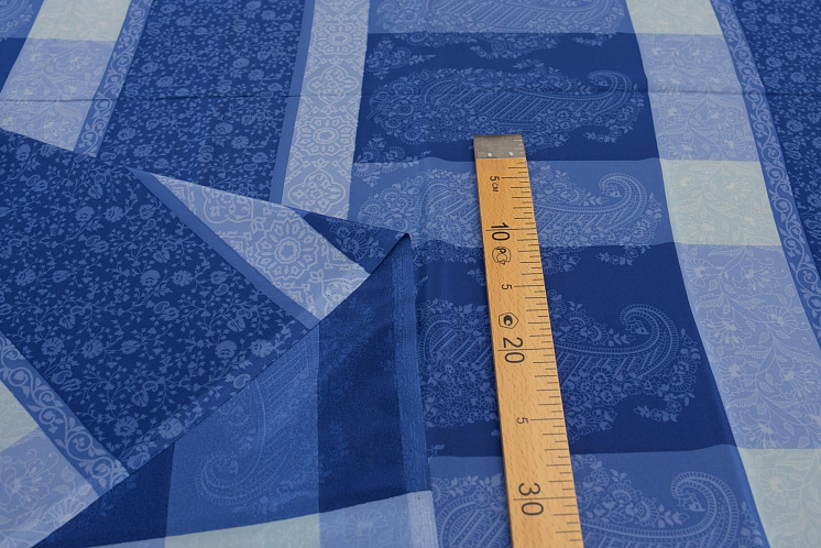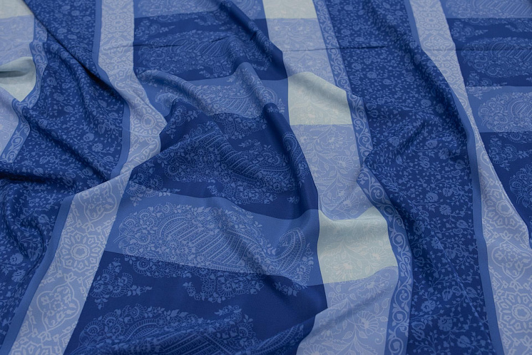 Крепдешин (н) растительный рисунок на сине-голубой геометрии Ratti - цена 3 800 ₽ У нас самые доступные цены на Крепы шелковые в Москве, доставка по всей России - интернет магазин тканей Тессутидея. Артикул товара для заказа - 10-2234. Страна производства ткани – Италия. Ширина этого материала - 140. Состав - Шелк 100%. Наличие остатков на складе - 8.15 м