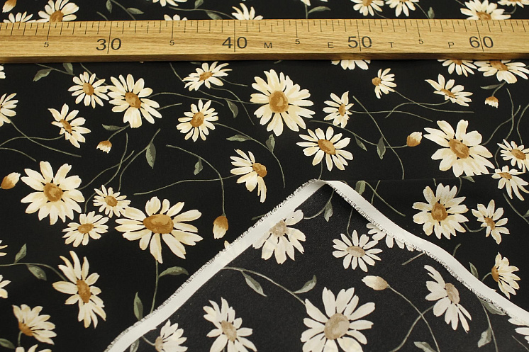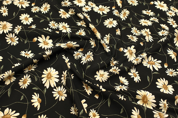 Крепдешин (н) ромашки на черном - цена 6 200 ₽ У нас самые доступные цены на Крепы шелковые в Москве, доставка по всей России - интернет магазин тканей Тессутидея. Артикул товара для заказа - 10-4468. Страна производства ткани – Италия. Ширина этого материала - 140. Состав - Шелк 100%. Наличие остатков на складе - 15 м