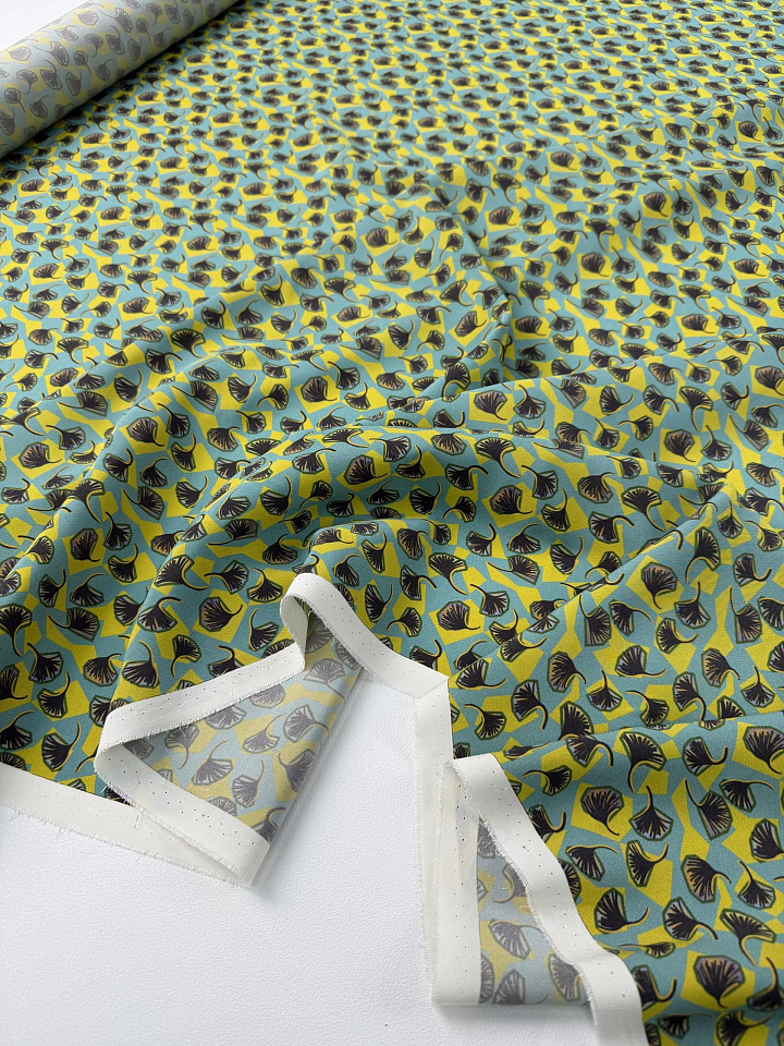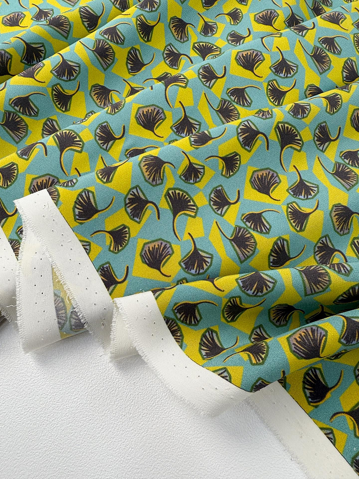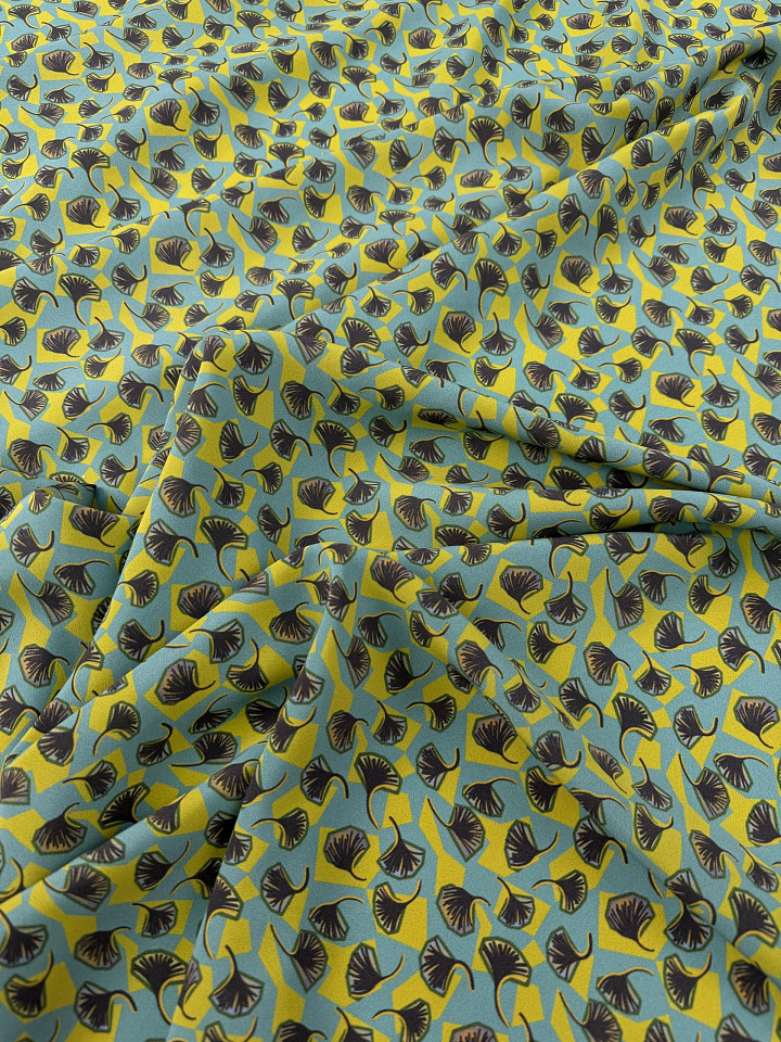 Крепдешин (н) стилизованный растительный рисунок на серо-бирюзовом - цена 6 200 ₽ У нас самые доступные цены на в Москве, доставка по всей России - интернет магазин тканей Тессутидея. Артикул товара для заказа - 10-4823. Страна производства ткани – Италия. Ширина этого материала - 135. Состав - Шелк 100%. Наличие остатков на складе - 8.2 м