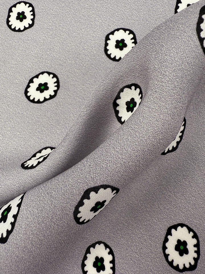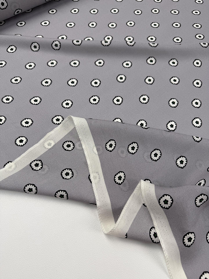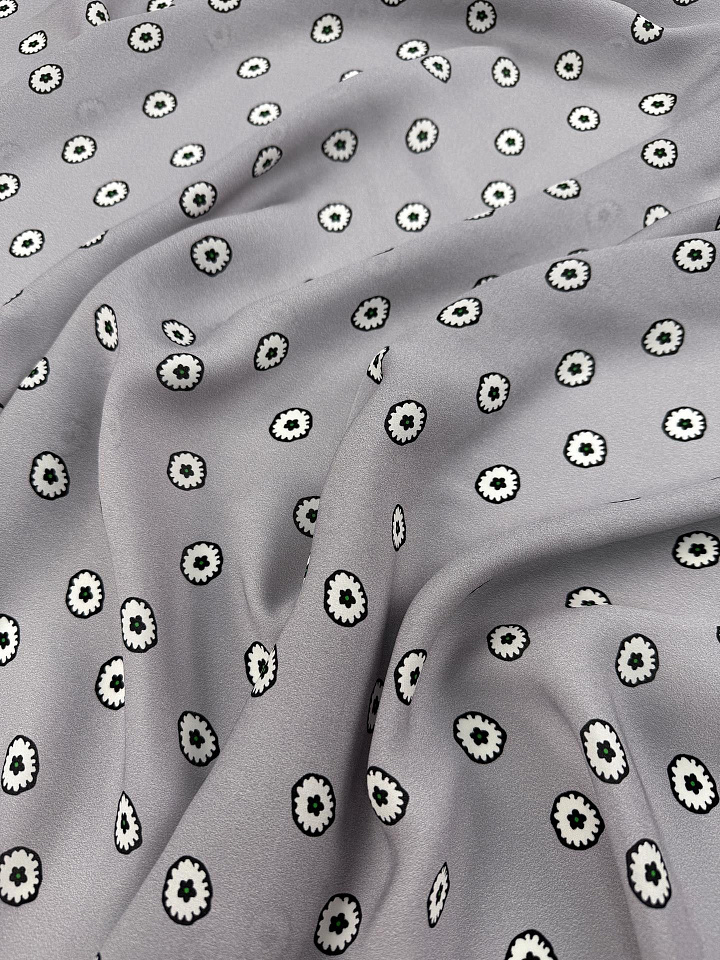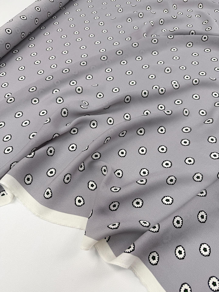 Крепдешин (н) стилизованный цветочный рисунок на сером - цена 5 400 ₽ У нас самые доступные цены на в Москве, доставка по всей России - интернет магазин тканей Тессутидея. Артикул товара для заказа - 10-4852. Страна производства ткани – Италия. Ширина этого материала - 135. Состав - Шелк 100%. Наличие остатков на складе - 3.8 м