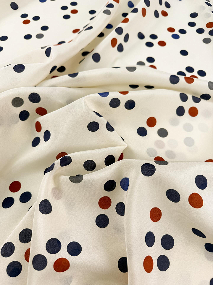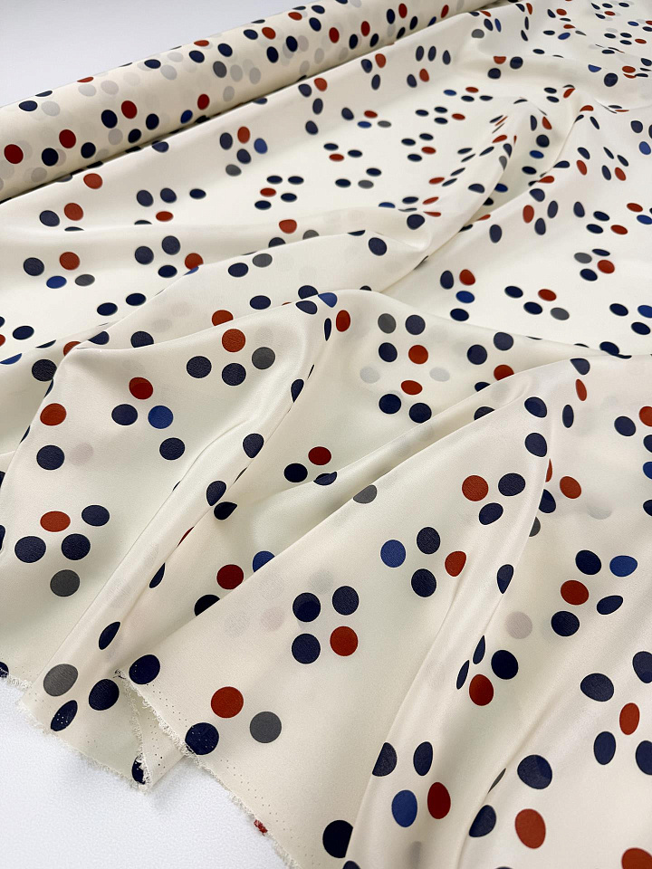 Крепдешин (н) цветной горох на молочном - цена 5 200 ₽ У нас самые доступные цены на в Москве, доставка по всей России - интернет магазин тканей Тессутидея. Артикул товара для заказа - 10-5076. Страна производства ткани – Италия. Ширина этого материала - 140. Состав - Шелк 100%. Наличие остатков на складе - 14 м