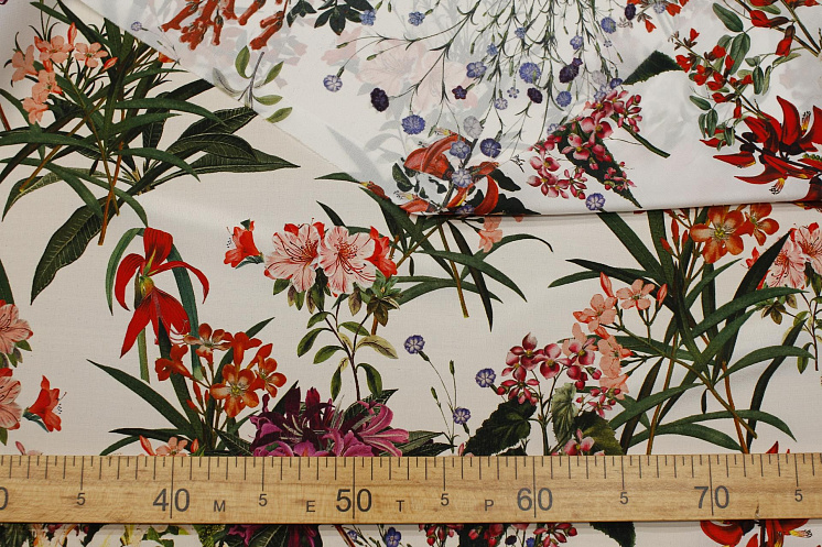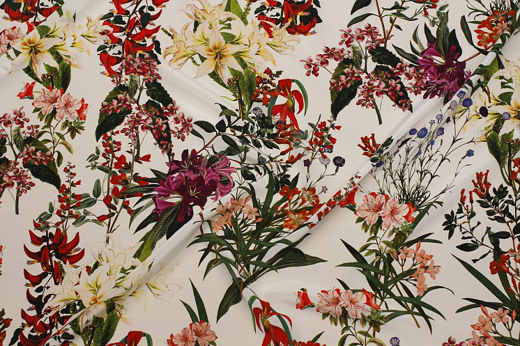 Крепдешин (н) цветочный рисунок на белом - цена 6 200 ₽ У нас самые доступные цены на Крепы шелковые в Москве, доставка по всей России - интернет магазин тканей Тессутидея. Артикул товара для заказа - 10-3841. Страна производства ткани – Италия. Ширина этого материала - 140. Состав - Шелк 100%. Наличие остатков на складе - 12.1 м