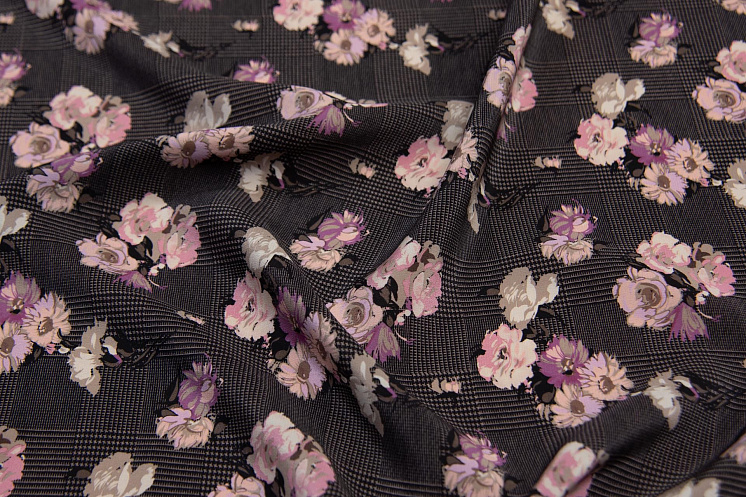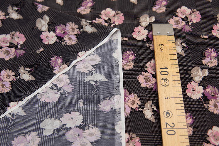 Крепдешин (н) цветочный рисунок на черно-коричневой стилизованной клетке - цена 5 200 ₽ У нас самые доступные цены на Крепы шелковые в Москве, доставка по всей России - интернет магазин тканей Тессутидея. Артикул товара для заказа - 10-1804. Страна производства ткани – Италия. Ширина этого материала - 140. Состав - Шелк 100%. Наличие остатков на складе - 5.9 м