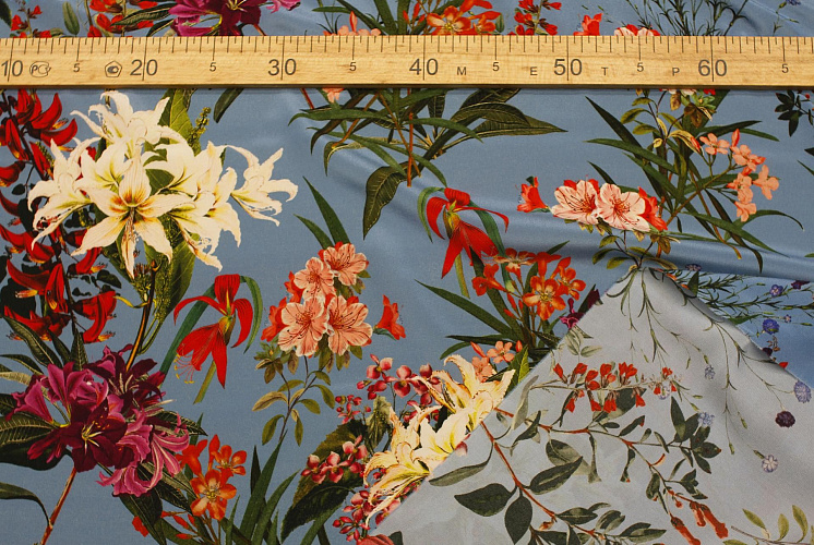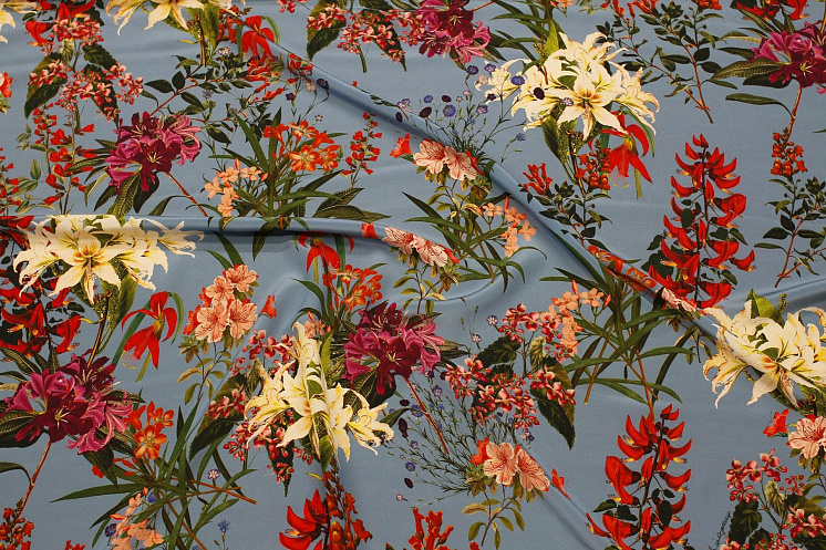 Крепдешин (н) цветочный рисунок на голубом - цена 6 200 ₽ У нас самые доступные цены на в Москве, доставка по всей России - интернет магазин тканей Тессутидея. Артикул товара для заказа - 10-3842. Страна производства ткани – Италия. Ширина этого материала - 140. Состав - Шелк 100%. Наличие остатков на складе - 2.65 м