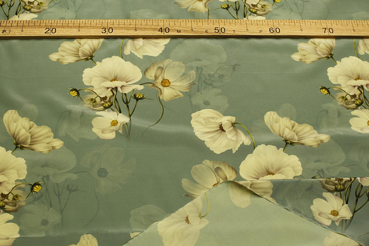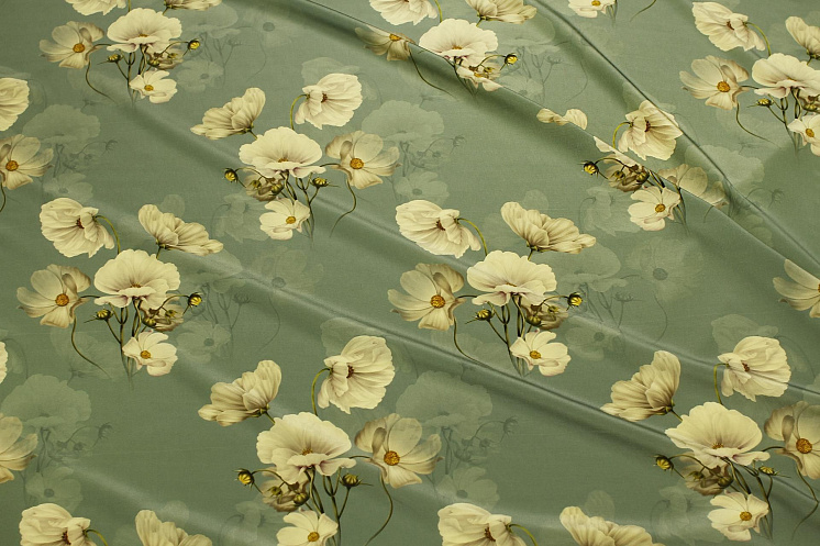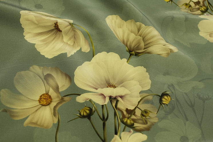 Крепдешин (н) цветочный рисунок на серо-зеленом - цена 5 800 ₽ У нас самые доступные цены на в Москве, доставка по всей России - интернет магазин тканей Тессутидея. Артикул товара для заказа - 10-4677. Страна производства ткани – Италия. Ширина этого материала - 140. Состав - Шелк 100%. Наличие остатков на складе - 6 м