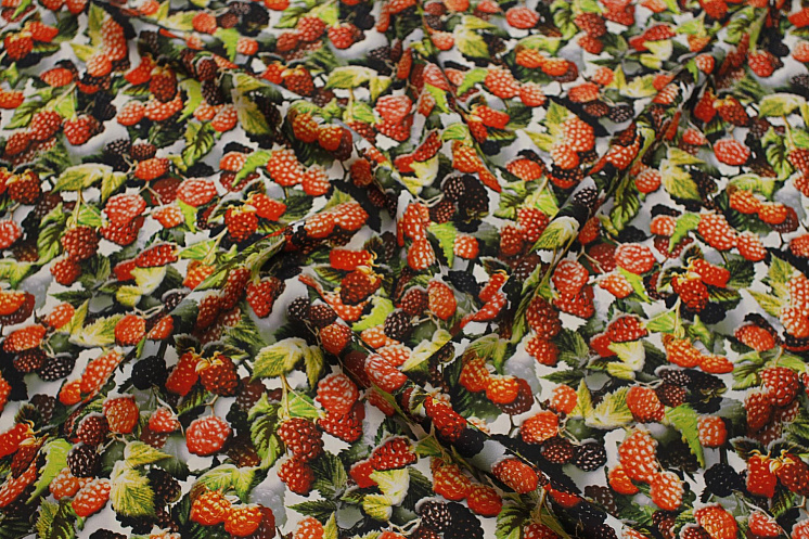 Крепдешин (н) ягоды малины на молочном Арт. 10-4062